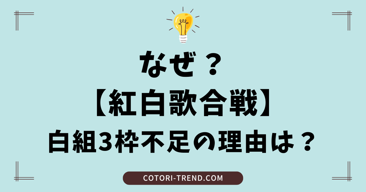 なぜ?紅白歌合戦の白組3枠不足の理由は?サプライズ出演に注目!