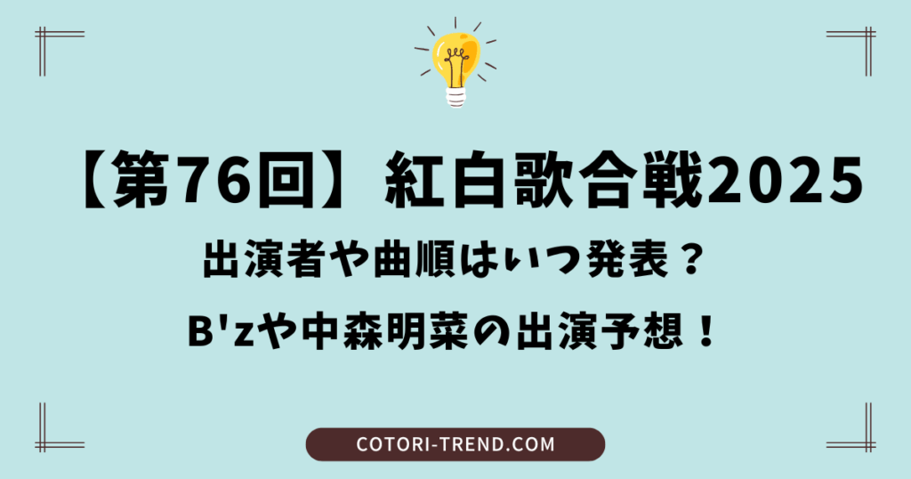 【第76回】紅白歌合戦2025出演者や曲順はいつ発表?B’zや中森明菜の出演予想!