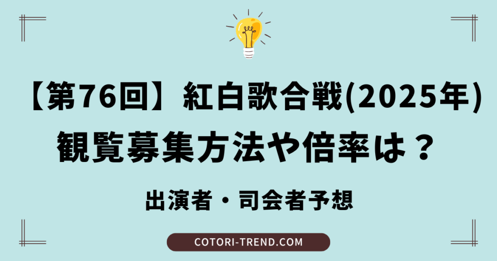 【第76回】紅白歌合戦(2025年)観覧募集方法や倍率は?出演者・司会者予想