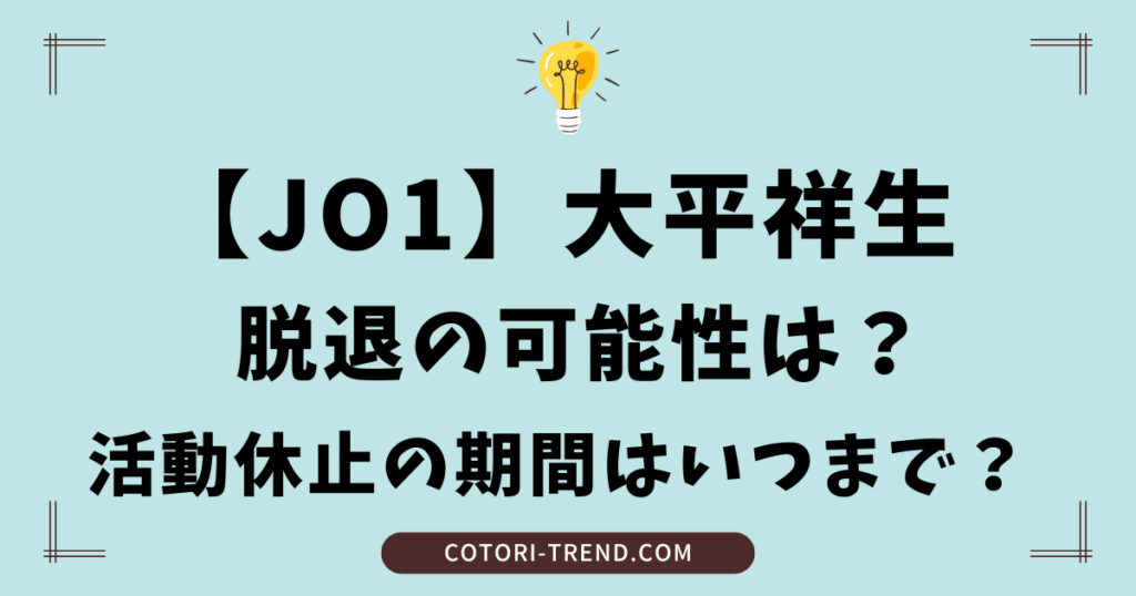大平祥生(JO1)脱退の可能性は?活動休止の期間はいつまで?