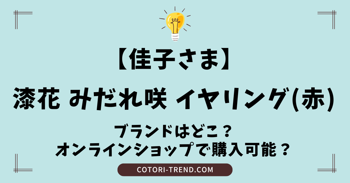 【佳子さま】漆花みだれ咲イヤリング(赤)ブランドはどこ?